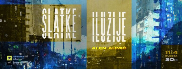 Izložba Slatke iluzije predstavlja recentni ciklus Alena Ahmića, realizovan tehnikom ulja na platnu, u kojem dominira cityscape motiv. Kroz urbane pejzaže, noćne ulice, stambene blokove i refleksije mokrog asfalta, Ahmić gradi emocionalni doživljaj grada i javnog prostora, ne kao dokument stvarnosti, već kao introspektivnu mapu sjećanja i identiteta.